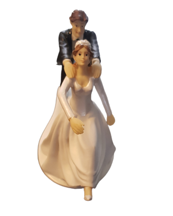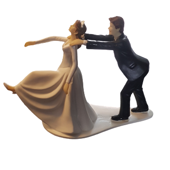 Natuurlijk mag de taarttopper op de bruidstaart niet ontbreken. Dit humoristische stel zal de lachers zeker niet ontgaan bij het aansnijden van de bruidstaart.